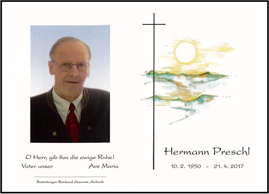 Die Vereinigten Schützen Oberbernbach nehmen Abschied von ihrem Mitglied, Herrn Hermann Preschl.