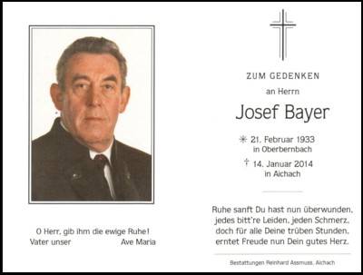 Die Vereinigten Schützen Oberbernbach nehmen Abschied von ihrem Mitglied Herrn Josef Bayer.