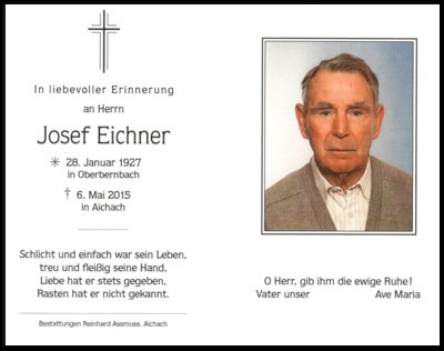 Die Vereinigten Schützen Oberbernbach nehmen Abschied von ihrem Mitglied Herrn Josef Eichner.