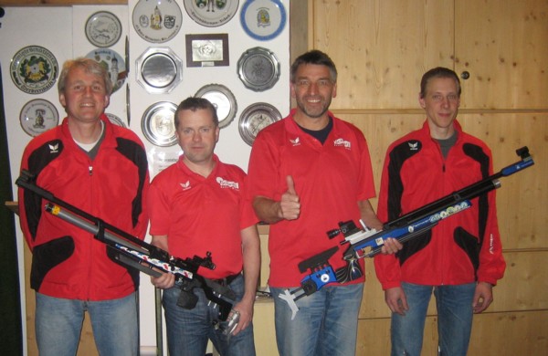 Foto von links: Michael Hofberger Ringdurchschnitt 376,1 R., Richard Vogelsang 376,2 R., Anton Heinrich 379,1 R. = Gruppensieger in der Gauoberliga B Gruppe 2 und Stefan Schneider 371,7 R