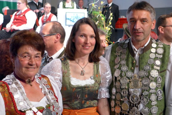Der 1. Gau-Schützenmeister Franz Achter und unsere zwei Gauschützenkönige und die Siegerin auf der Damenscheibe (Gauschießen) haben den Gau Aichach beim Bezirksschützentag 2014 in Altötting vertreten.