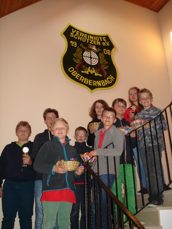 Die Schützenjugend der Vereinigten Schützen Oberbernbach kämpften am Karsamstag auf Osterhasenscheiben um die höchsten Punkte. Dabei erreichte bei den Schülern Michael Märkl und bei der Jugend seine Schwester Franziska jeweils den 1.Platz. Sie sicherten sich somit den Osterpokal. Jeder Teilnehmer erhielt zudem ein Osterhasenkörbchen mit süssen Leckereien.