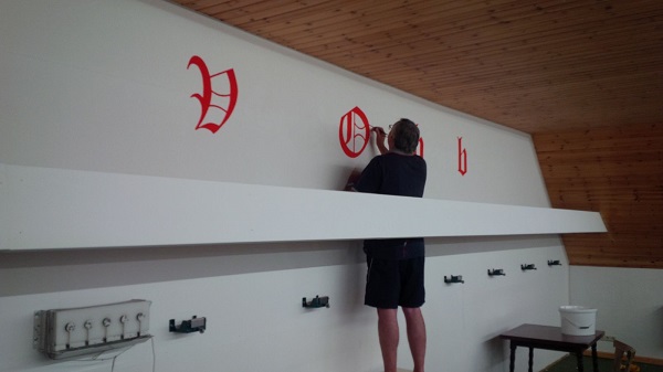 Es geht voran... Teile vom Vereinsnamen sind schon sichtbar.
