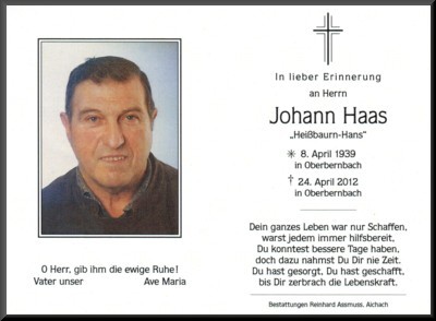 Die Vereinigten Schützen Oberbernbach nehmen Abschied von ihrem Mitglied Herrn Johann Haas.