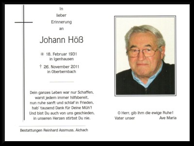 Die Vereinigten Schützen Oberbernbach nehmen Abschied von ihrem Mitglied Herrn Johann Höß.