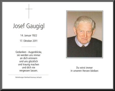 Die Vereinigten Schützen Oberbernbach nehmen Abschied von ihrem ältesten Mitglied, Herrn Josef Gaugigl.