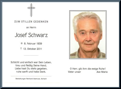 Die Vereinigten Schützen Oberbernbach nehmen Abschied von ihrem Mitglied, Herrn Josef Schwarz.