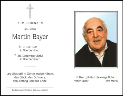 Im Jahre 1962 wurde er Mitglied bei den Vereinigten Schützen Oberbernbach. Wir trauern um einen Schützenfreund der dem Verein stets wohlgesonnen war. Die Schützen werden Ihm ein ehrendes Andenken bewahren.