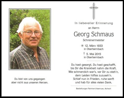 Die Vereinigten Schützen Oberbernbach nehmen Abschied von ihrem Mitglied Herrn Georg Schmaus.