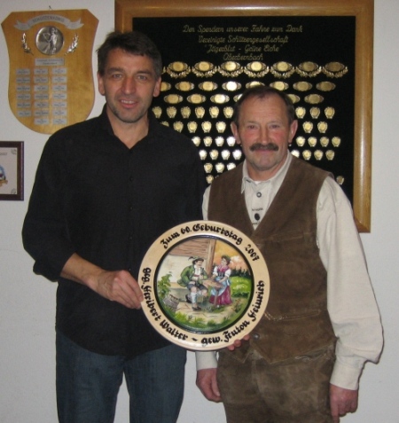 Anlässlich seines 60. Geburtstages stiftete Heribert Walter den Oberbernbacher Schützen eine handgemalte Schützenscheibe. Diese sollte nicht der Schütze mit dem besten Teiler gewinnen, sondern derjenige, der am nächsten an einen 60-Teiler herankam. Dies gelang dem Schützenmeister der Vereinigten, Anton Heinrich, mit einem 59,9-Teiler am Besten. Die Nächstplatzierten waren Karl Beck, Fuidl Hubert und Siegfried Weiß.