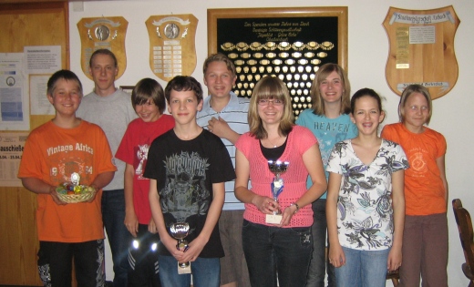 Die Schützenjugend kämpfte um Ringe und Punkte. Geschossen wurde auf Zimmerstutzenscheiben und auf Glücksscheiben. Auf der Ringscheibe setze sich Kerstin Weiß mit 49 von 50 möglichen Ringen durch, und gewann einen der beiden von Ehrenschützenmeister Martin Bayer gestifteten Pokale. Den zweiten Pokal konnte sich Kilian Heinrich mit nach Hause nehmen, er brachte es auf der Glücksscheibe auf 134 Punkte.