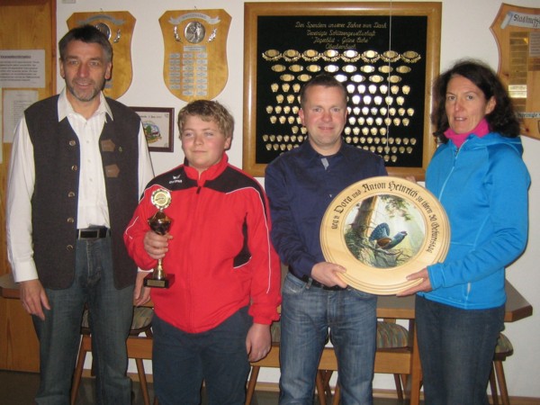 Erster Schützenmeister Anton Heinrich war sehr erfreut, so viele Anwesende der Oberbernbacher Schützen zur Weihnachtsfeier begrüßen zu dürfen. Der besinnliche Teil wurde von den Geschwistern Theresa und Sebastian Wachinger musikalisch gestaltet. Die Weihnachtsgeschichten wurden vorgetragen von Lisi Fuidl und Matthias Wachinger, die abwechselnd mit der Musik nachdenkliche, besinnliche und lustige Geschichten vortrugen, und so auf das bevorstehende Weihnachtsfest einstimmten. Nach dem gemeinsamen Essen ging es an die Preisverleihung des Geburtstagschiessens von Dora und Anton Heinrich, das parallel zum Königsschießen ausgetragen wurde. Sieger des Geburtstagschiessens sollte derjenige sein, der dem Geburtsjahr (63) der Beiden am nächsten kommen würde. Sieger dieses Schießens wurde Richard Vogelsang (SK) mit einem 63,3T, er konnte die handbemalte Schützenscheibe in Empfang nehmen. Den Pokal für die Jugend sicherte sich Michael Märkl mit einem 23,3T.