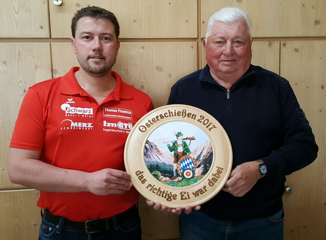 Auch in diesem Jahr trafen sich viele Oberbernbacher Schützen am Gründonnerstag im Schützenheim zum Osterpreisschiessen. Am Vortag bemalten die Jungschützen die Eier in bunten Farben in sehr originellen Motiven unter Aufsicht der Jugendleiter. In jedem Ei befand sich eine Nummer die einem Preis zugeordnet war. Die von Stefan Goldstein gestiftete Osterscheibe bekam derjenige der das Ei mit der richtigen Nummer, die vorher vom Stifter der Scheibe festgelegt wurde, abgeschossen hat. Gewinner der Scheibe wurde Michael Schmidberger sen.